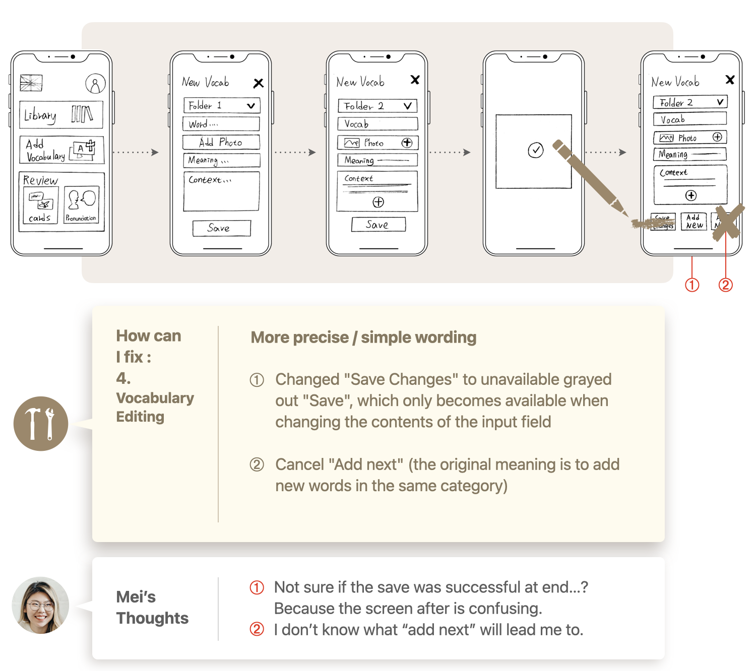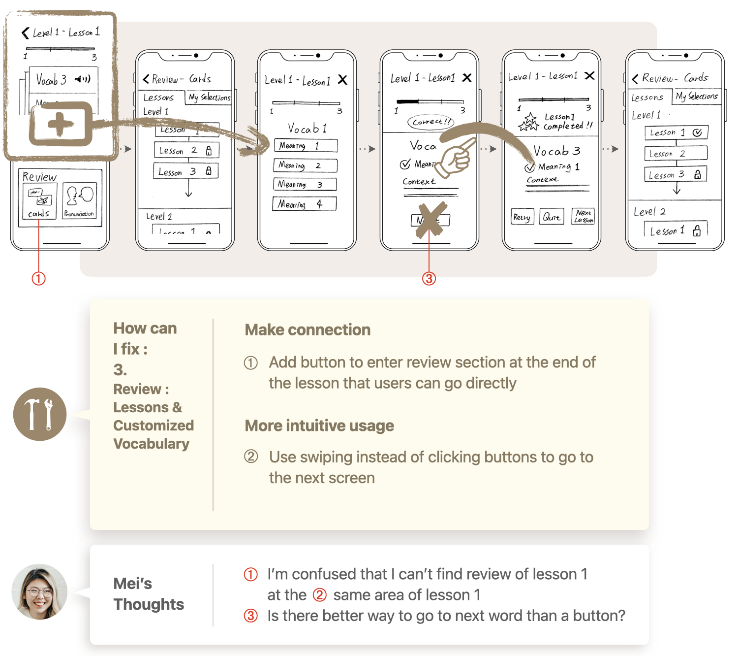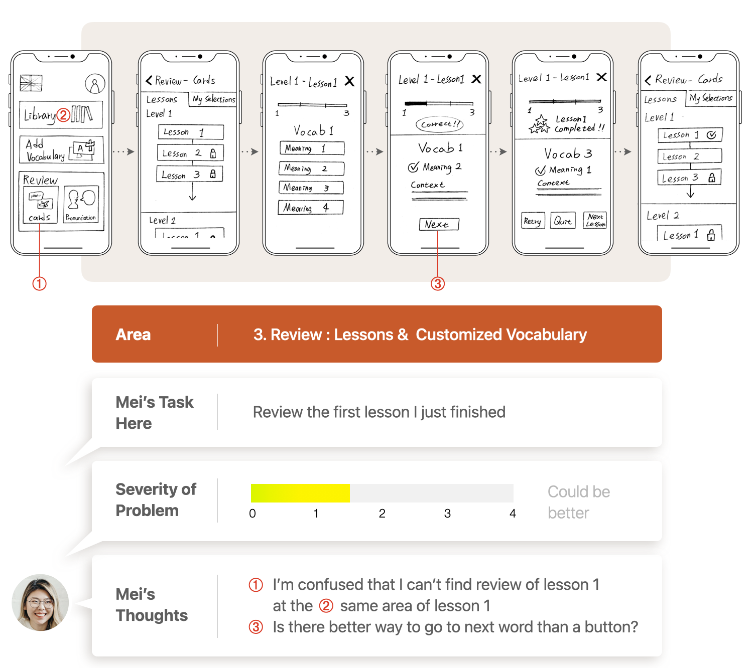 The prototype inspires Mei, It makes her thinks about further problems with vocabulary learning.
